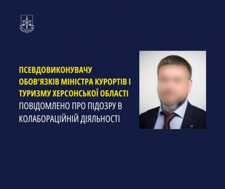 Псевдовиконувачу обов’язків міністра курортів і туризму Херсонської області повідомлено про підозру у колабораційній діяльності
