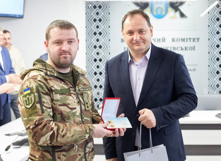 Руслан Марцінків вручив медаль “За честь і звитягу” бійцю 79 батальйону 102 бригади ТРО та депутату Івано-Франківської обласної ради Олегу Понайду