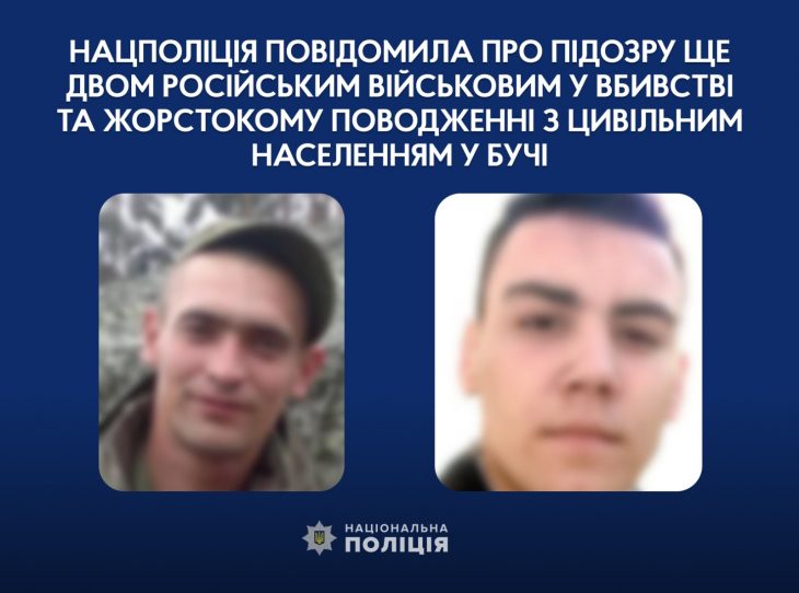Слідчі поліції повідомили ще двом російським військовим про підозру у вбивстві та жорстокому поводженні з цивільним населенням у Бучі