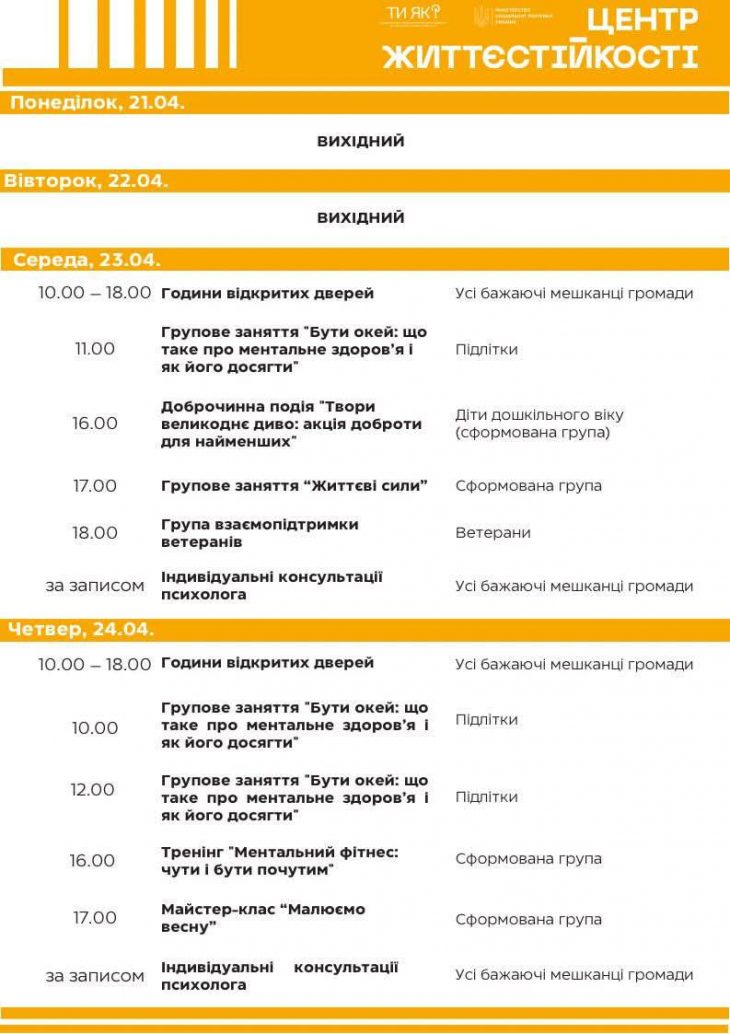Центр життєстійкості Калуської громади запрошує всіх охочих долучитися до заходів