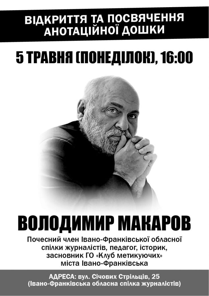 У Івано-Франківську відкриють меморіальну дошку Володимиру Макарову