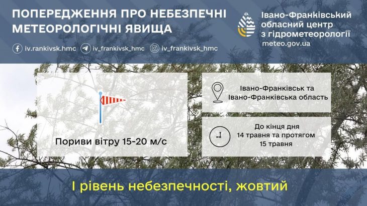 До кінця дня 14 травня та протягом доби 15 травня по місту Івано-Франківську та області пориви південно-західного вітру 15-20 м/с . Пише Голос-Інфо з посиланням на Івано-Франківський обласний центр з […]