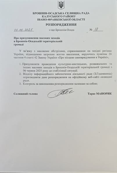 У Брошнів-Осадській громаді призупинено проведення у громаді всіх масових заходів