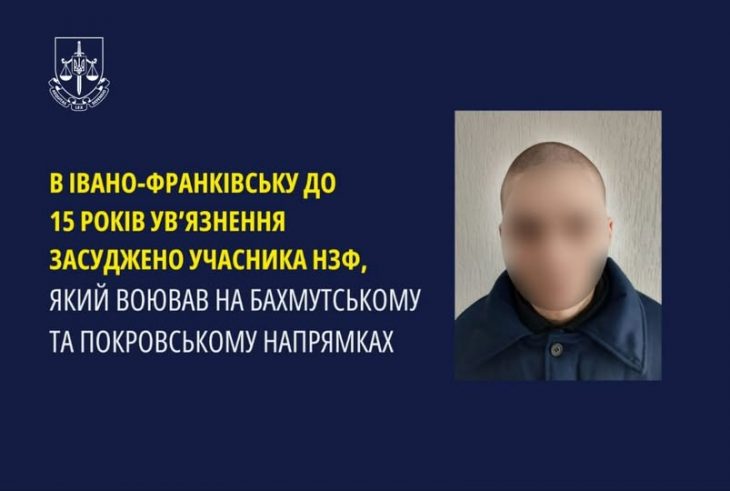 В Івано-Франківську до 15 років ув’язнення засуджено учасника нзф, який воював на Бахмутському та Покровському напрямках