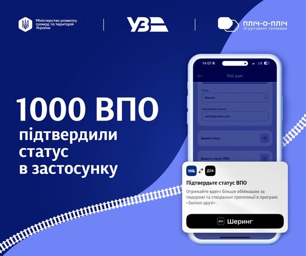 Понад 1000 ВПО підтвердили свій статус через “Дію” в застосунку Укрзалізниці