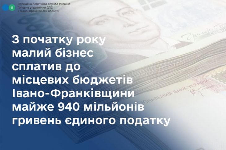 З початку року малий бізнес сплатив до місцевих бюджетів Івано-Франківщини майже 940 мільйонів гривень єдиного податку