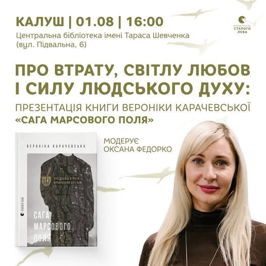 Калушан запрошують на презентацію книги Вероніки Карачевської «Сага Марсового поля»