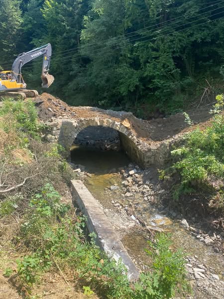 Тривають роботи на мосту через річку Рибниця, км 56+648 дороги Р-24 Татарів – Кам’янець-Подільський.
