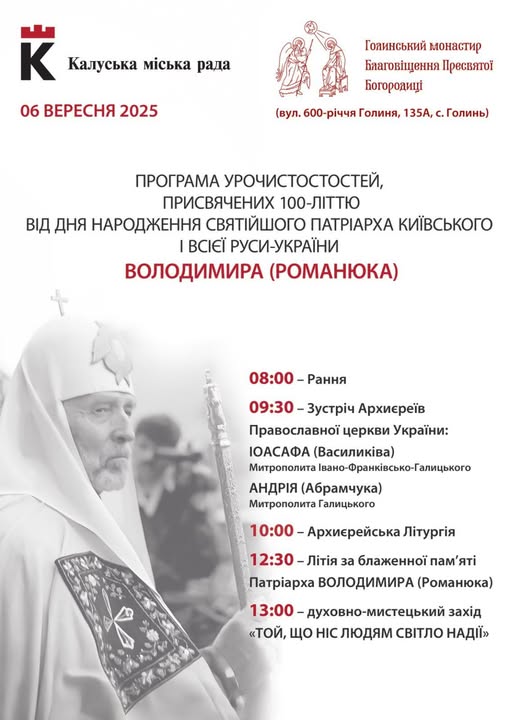 У суботу, 6 вересня, у селі Голинь Калуської громади відбудуться урочисті заходи з нагоди 100-річчя від дня народження Святійшого Патріарха Київського і всієї Руси-України Володимира (Романюка). Про це пише Голос-Інфо […]