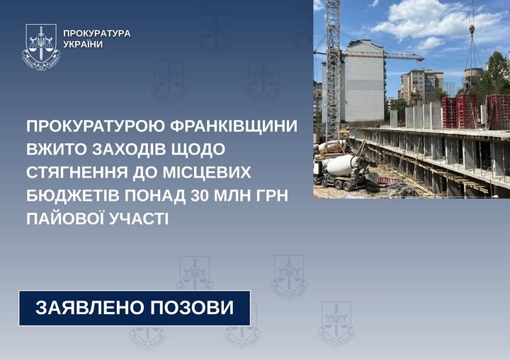 Прокуратура Франківщини стягує понад 30 млн грн пайової участі на користь громад