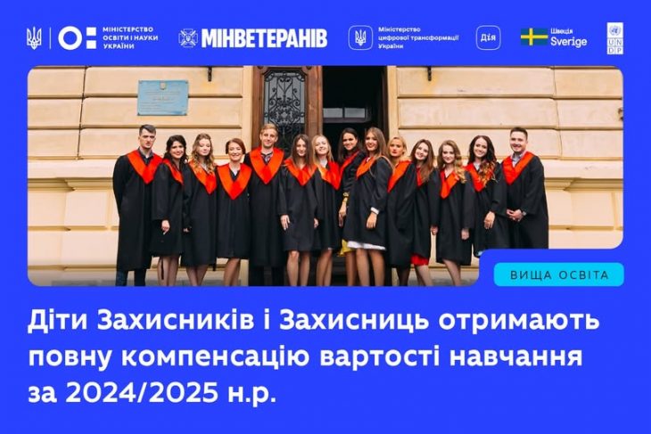 Держава компенсує навчання дітям захисників і захисниць за попередній навчальний рік — сертифікати надійдуть у застосунку Дія