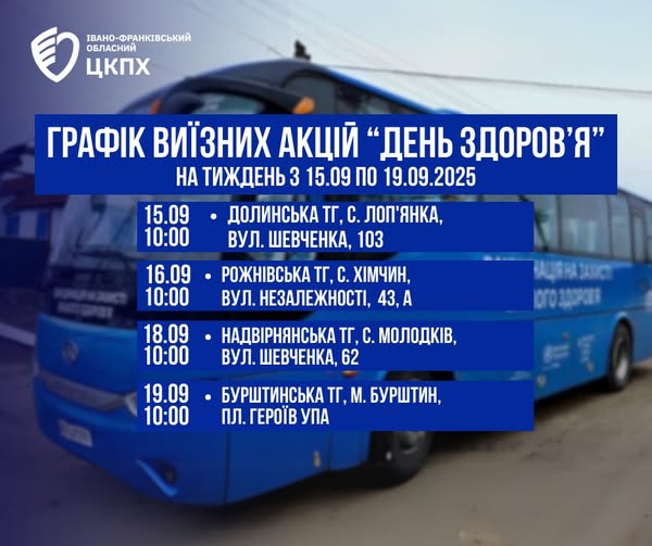 Графік акцій «День здоров’я» на Прикарпатті з 15 по 19 вересня