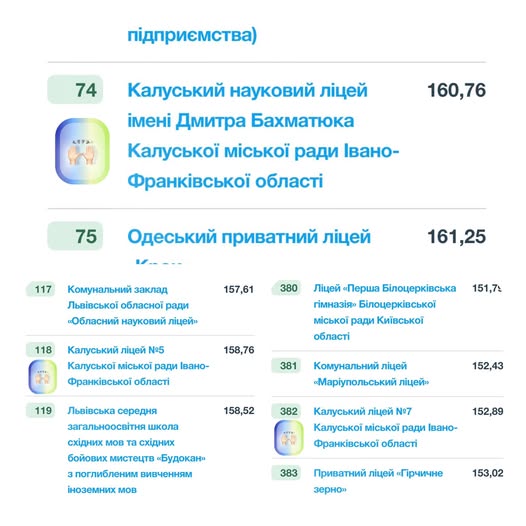 Калуські ліцеї у рейтингу кращих шкіл Івано-Франківщини