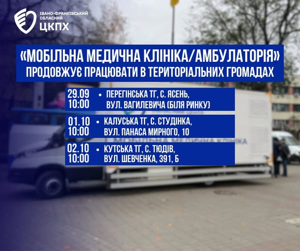 «Мобільна медична клініка» проведе обстеження у трьох громадах Прикарпаття