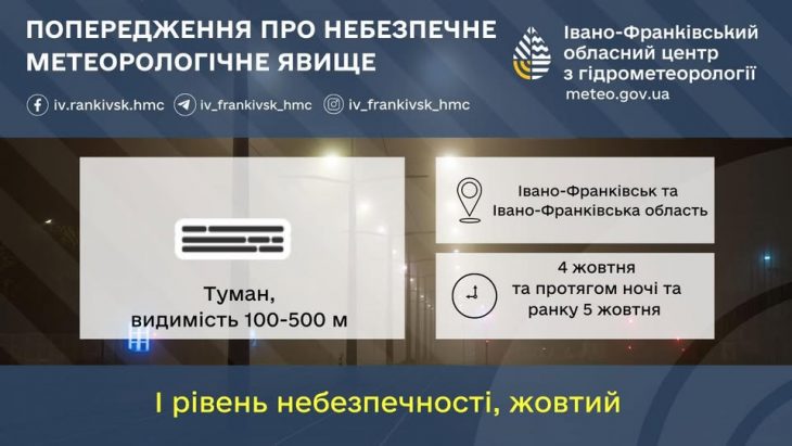 Синоптики попереджають про небезпечне метеорологічне явище на території міста Івано-Франківська та області. Інформує Голос-Інфо, посилаючись на Івано-Франківський обласний центр з гідрометеорології До кінця дня 4 жовтня, а також протягом ночі […]