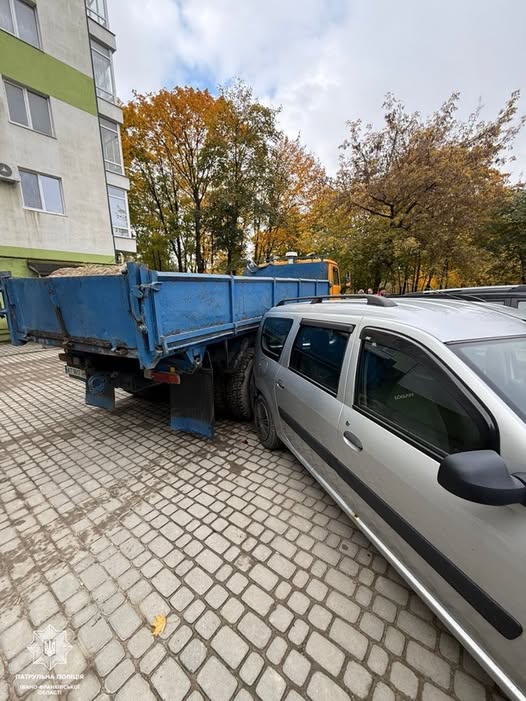 У Франківську КамАЗ покотився і потрощив три авто та паркан