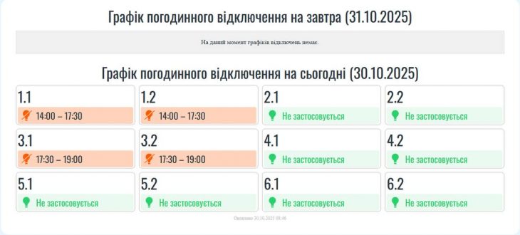 До уваги споживачів – введені графіки вимкнень: оновлення в графіках погодинних вимкнень