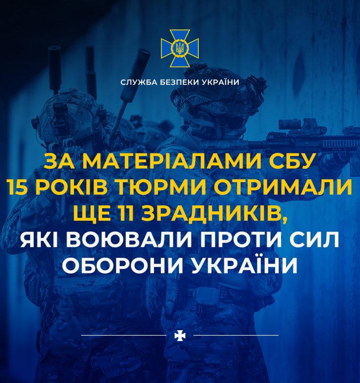 За доказовою базою Служби безпеки реальні терміни ув’язнення отримали ще одинадцять зрадників, які перейшли на бік ворога і воювали проти Сил оборони на Донеччині та Луганщині. Пише Голос-Інфо, посилаючись на […]