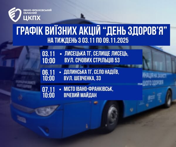 Графік виїзних «Днів здоров’я» на Прикарпатті (3–9 листопада)