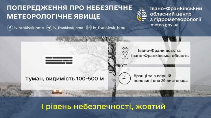 Мешканців Івано-Франківської області та обласного центру попереджають про погіршення погодних умов сьогодні, 29 листопада 2025 року. Інформує Голос-Інфо, посилаючись на Івано-Франківський обласний центр з гідрометеорології Вранці та у першій половині […]