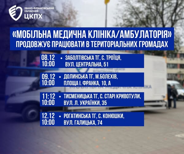 «Мобільна медична клініка» продовжує працювати в територіальних громадах Івано-Франківської області