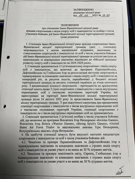 В Івано-Франківську розпочався прийом заявок на отримання стипендій кращим спортсменам з видів спорту осіб з інвалідністю та особам з числа учасників бойових дій