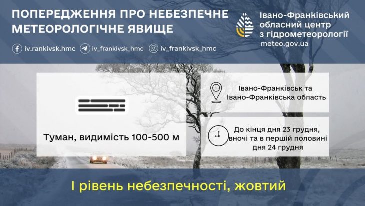 На Прикарпатті оголошено штормове попередження через сильний туман