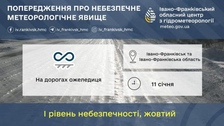 На Прикарпатті 11 січня прогнозують ожеледицю