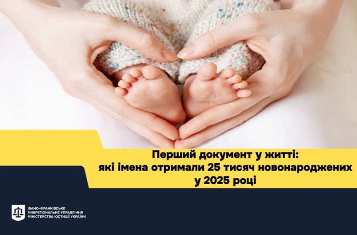У 2025 році в Івано-Франківській, Закарпатській, Тернопільській та Чернівецькій областях 25 723 малюки отримали свій перший документ. Про це Голос-Інфо дізнається від Івано-Франківського міжрегіонального управління Міністерства юстиції України Які імена […]