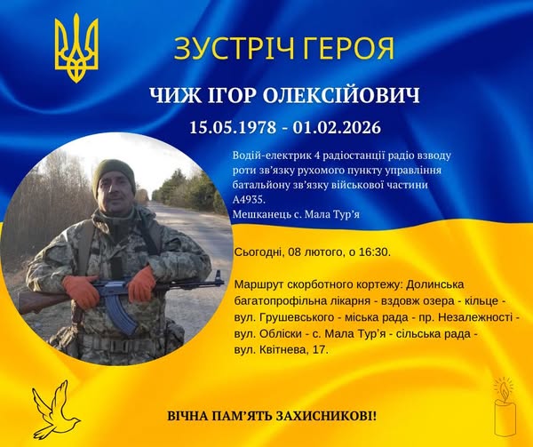 Сьогодні Долинщина зустрічає свого Героя — мешканця села Мала Тур’я, водія-електрика батальйону зв’язку військової частини А4935 Ігоря Олексійовича Чижа. Захисник віддав життя, забезпечуючи зв’язок та оборону нашої держави. Пише Голос-Інфо […]