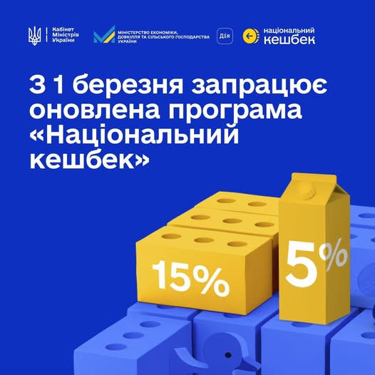 Уряд оновив програму «Національний кешбек»: з 1 березня запрацює диференційований кешбек 5% і 15%