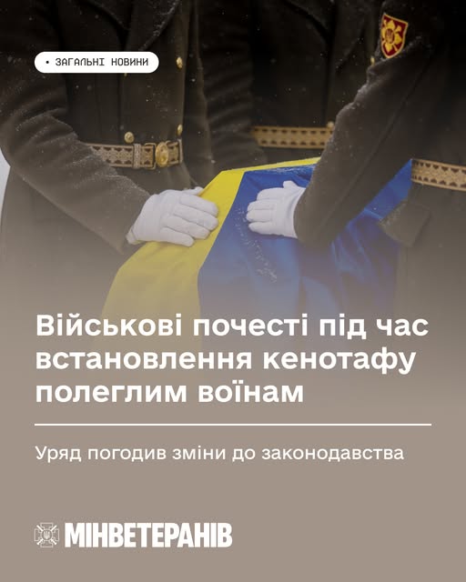 Кабінет Міністрів України погодив розроблені Мінветеранів зміни до закону «Про Статут гарнізонної та вартової служб Збройних Сил України». Йдеться про запровадження офіційного військового прощального ритуалу під час встановлення кенотафу українським […]