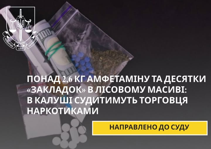 Понад 2,6 кг амфетаміну та десятки «закладок» в лісовому масиві: в Калуші судитимуть торговця наркотиками