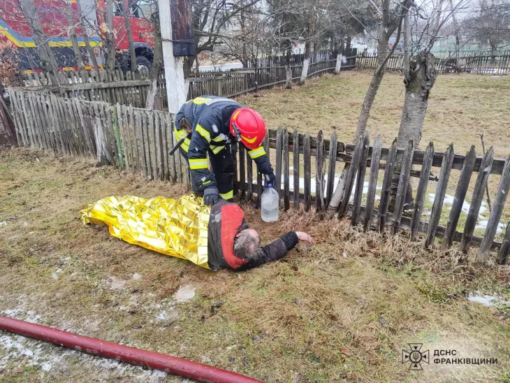 Нічна пожежа на Калущині: рятувальники витягли чоловіка з вогню