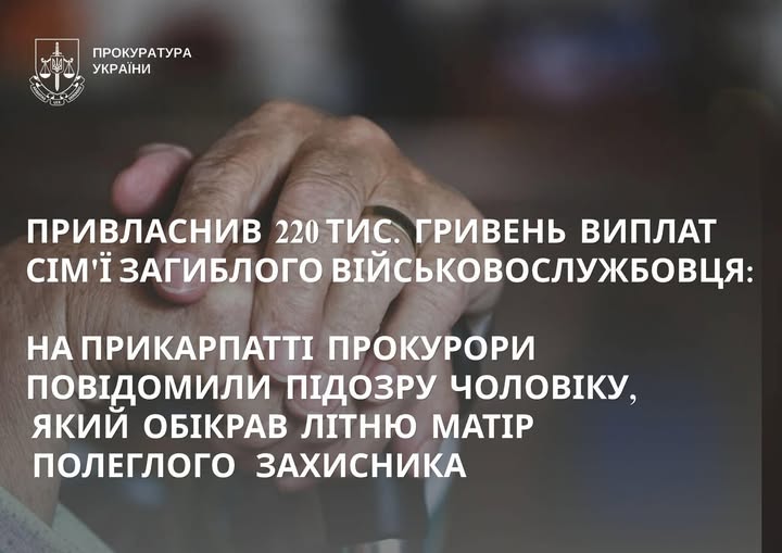 На Прикарпатті 52-річний мешканець села Дем’янів Бурштинської громади шахрайським способом заволодів коштами літньої матері полеглого військовослужбовця