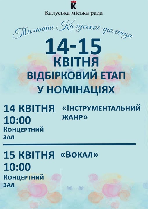 14 та 15 квітня, Калуська громада обиратиме найкращих виконавців у межах масштабного мистецького проєкту. Про старт конкурсних прослуховувань повідомив міський голова Андрій Найда. Про це пише Голос-Інфо з посиланням на […]