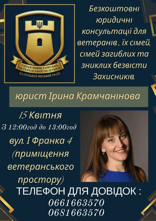 У Калуші відбудеться безоплатна юридична консультація для ветеранів та їхніх родин