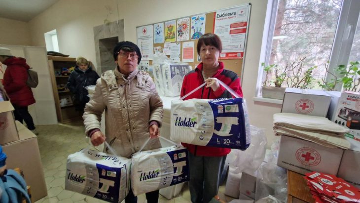 За поданням територіального центру соціального обслуговування м. Калуша працівники Калуської організації Товариства Червоного Хреста України виділили для 25-и маломобільних одиноких громадян, що перебувають на обліку у територіальному центрі, засоби особистої гігієни.