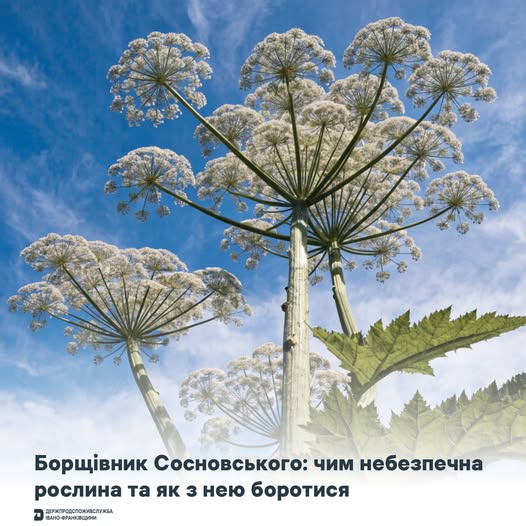 Фахівці Держпродспоживслужби в Івано-Франківській області повідомляють: у зв’язку з початком активної вегетації борщівника Сосновського та зростанням кількості випадків його виявлення в населених пунктах і вздовж доріг, жителів Прикарпаття закликають бути обережними та вчасно вживати заходів для недопущення поширення цієї небезпечної рослини