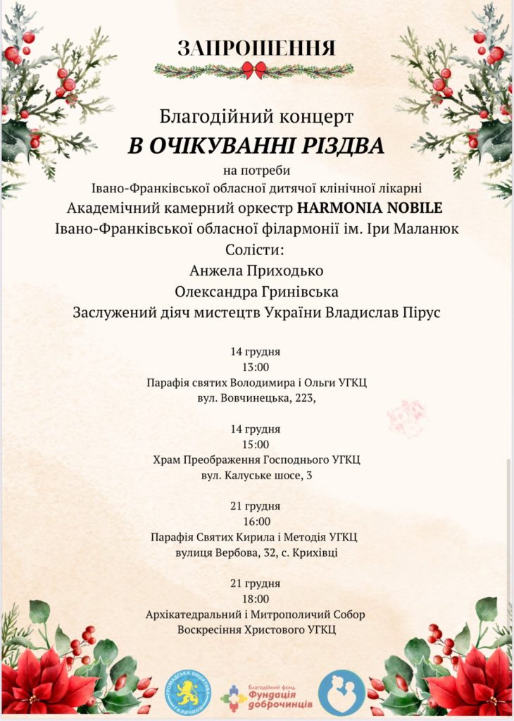 Благодійні різдвяні концерти «В очікуванні Різдва» відбудуться в храмах Івано-Франківська