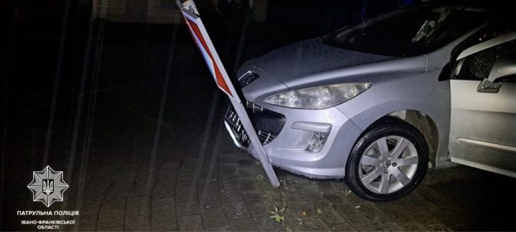 ДТП на кільці у Франківську: нетверезий водій на Peugeot протаранив дорожній знак