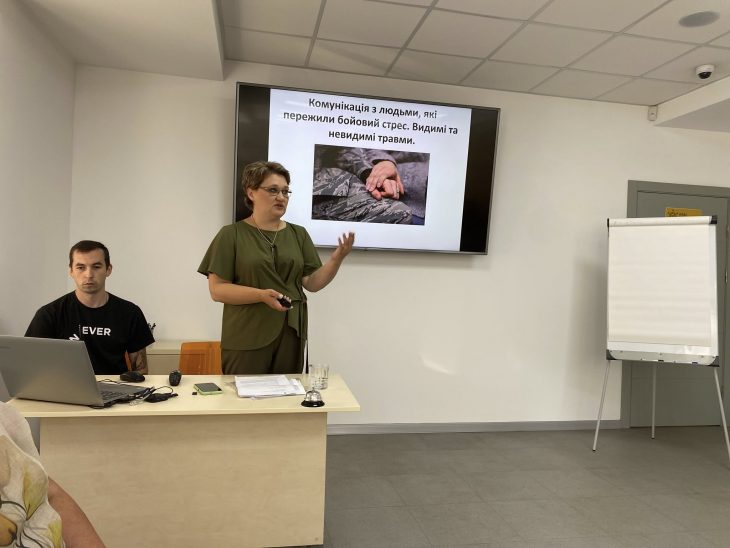 На тренінгу «Коректна комунікація з людьми з бойовим досвідом. Видимі, невидимі травми. Сучасний соціальний словник» учасників навчили ефективно та емпатично взаємодіяти з людьми, які пережили травматичний досвід. Говорили про те, як створювати безпечне середовище для спілкування та надавати якісний сервіс, зберігаючи повагу до почуттів клієнтів.