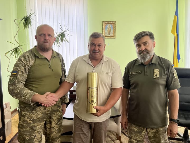 Перш за все вони щиро подякували мешканцям громади за всебічну підтримку та передали міському голові Богдану Кобилянському пам’ятний сувенір — гільзу з фронту.