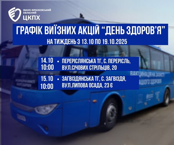 Графік виїзних акцій «День здоров’я» на тиждень з 13.10. по 19.10.2025 року