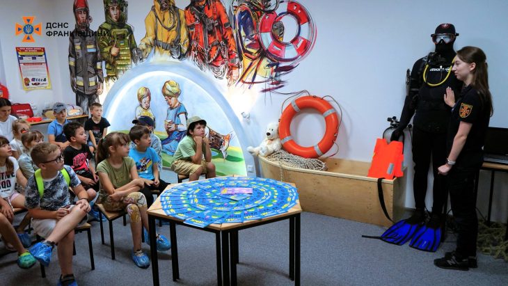 Сьогодні, до рятувальників завітали учасники оного із таборів Івано-Франківщини – «Clever Child». Рятувальники розповіли дітям про безпеку дорожнього руху, про пожежну та мінну безпеку, також про безпеку в горах та на воді. А ще діти побачили наслідки пожежі в кімнаті, яку демонструє діорама «Квартира до і після пожежі».