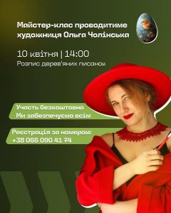 У реабілітаційному центрі «4.5.0. Прикарпаття» відбудеться майстерка із писанкарства. Заняття проведе відома калуська художниця Ольга Чолінська. До розфарбовування дерев’яних писанок запрошують військових і ветеранів.