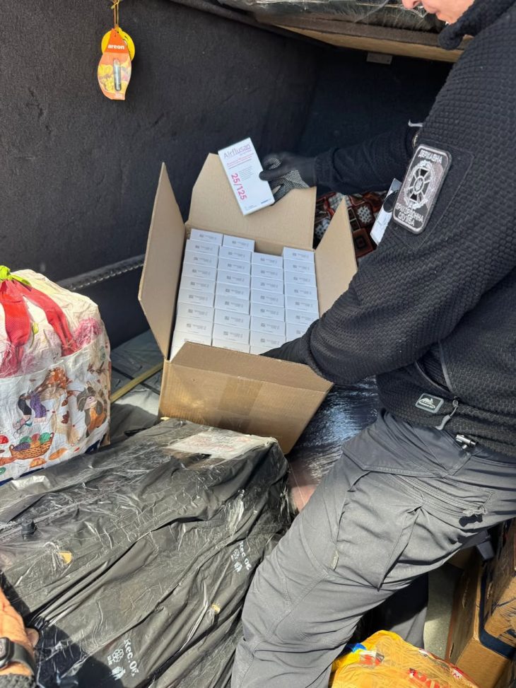 Під час огляду автомобіля Mercedes, що слідував з Польщі, у багажному відділенні було виявлено кілька коробок, в яких знаходилось 713 упаковок незадекларованих медичних препаратів.