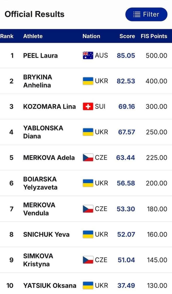 Лижна акробатка з міської територіальної громади Ангеліна Брикіна здобула «срібло» на етапі Кубка Європи з фристайлу.