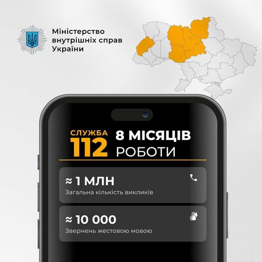 По всій Україні за вісім місяців роботи айже мільйон викликів громадян опрацювали оператори Служби 112.