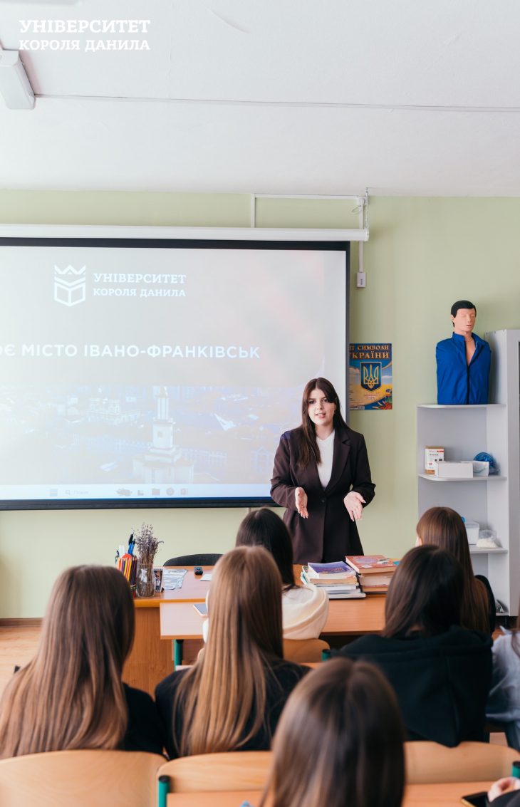 28 квітня Університет Короля Данила (УКД) продовжив масштабний профорієнтаційно-просвітницький проєкт, присвячений Дню міста. Команда університету відвідала три навчальні заклади громади: Ліцей №20, Ліцей №22 та Ліцей №25.